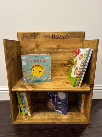 Personalized book shelf, size and number of shelves is fully customizable.