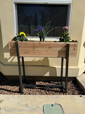 Tall planter box with stand, fully customizable for size and stain.